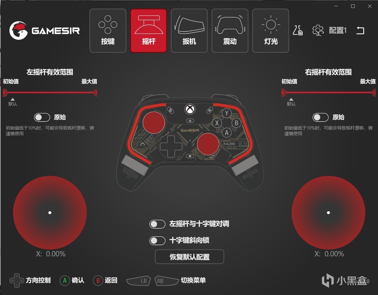 摇杆本身是带有一定的死区的,但可以从微软商店下载小鸡本家的Gamesir Nexus在其中将其改为无死区模式,就可以比较舒服的游玩了,至于摇杆漂移的问题~霍尔摇杆主打的就是一个永不漂移~