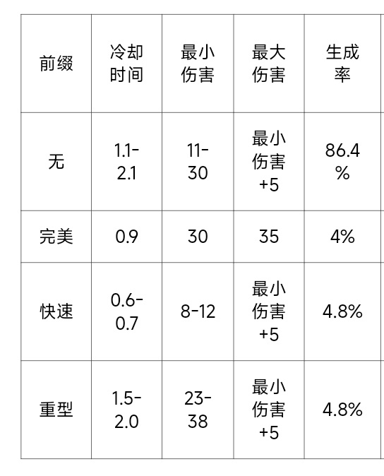 速度提升的持续时间范围为5到10秒。重铸的六个时间概率值是相等的。