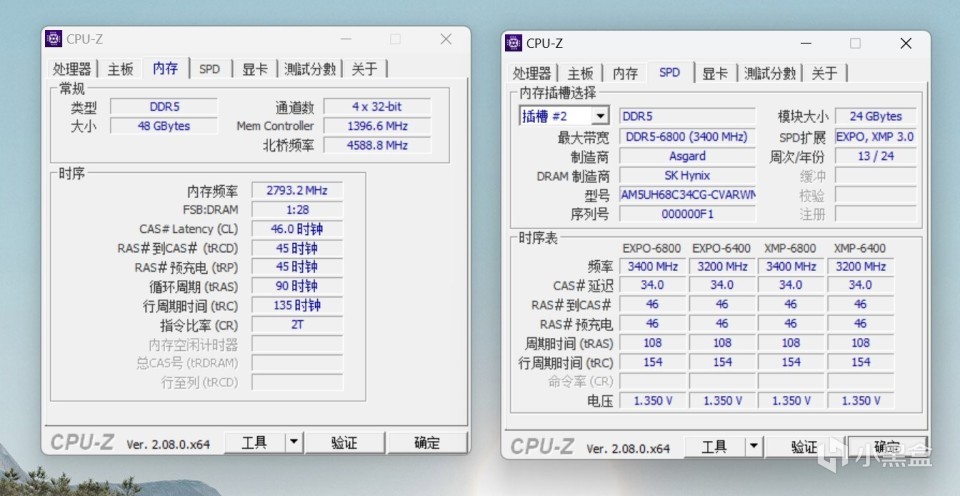 內存是海力士顆粒,製造商阿斯加特,默頻5600MHz,XMP可得到6800MHz。