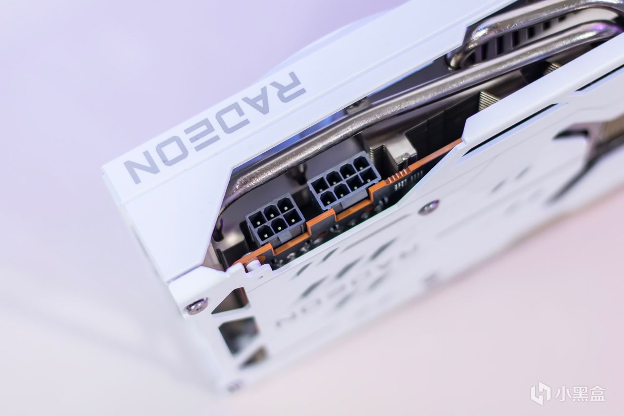 蓝宝石RX 6750 GRE 12GB极地版显卡配备8+6Pin外接供电接口,位于顶部靠后的位置,芯片厂家标称典型板卡功率为230W,整体功耗并不算很高,建议最低电源功率为650W,假如搭配的高端性能处理器,需酌量升级电源以完全满足整个硬件平台供电需求。