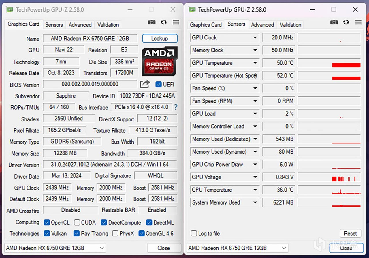 最近想要组装一台纯白色海景房主机,已经拥有白色的背插主板、机箱与水冷散热器,仍缺少一张白色风格的独立显卡,目前市面上还是NVIDIA与AMD两大厂商为主,在相同的价位A卡的游戏性能高一些,尤其是显存容量参数相对更好,在高分屏上不易出现爆显存的情况,同时考虑到性能颜值与预算等原因,特地自购了蓝宝石RX 6750 GRE 12GB极地版显卡,其采用纯白色的外观设计,作为2K价位出头甜点显卡,在2K分辨率下游戏性能确实给人不少惊喜,很好的填补了RX7600与RX 7700XT之间的空缺,接下来对其进行性能与散热测试,看看实力到底如何。