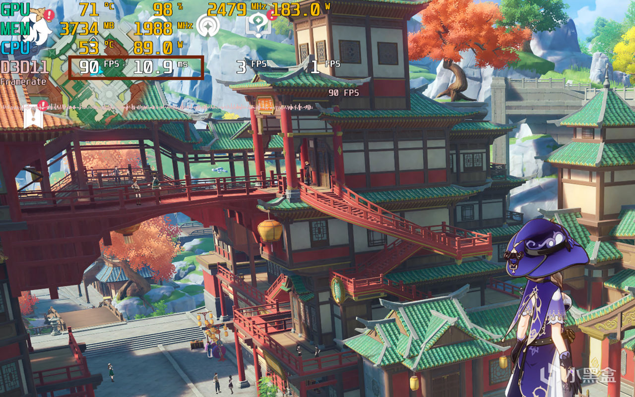 对于《原神》这游戏已经不满足于60Hz画面刷新率,毕竟目前已经进入高刷屏时代,利用工具解锁了60Hz刷新率限制,并把各项画面参数拉满,开启1.5倍渲染精度与极高场景细节,将GPU图形性能占满,蓝宝石RX 6750 GRE 12GB极地版显卡在该游戏中的帧数能稳定在90FPS。