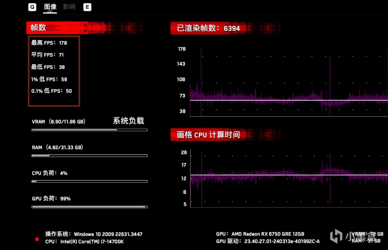 在《艾尔登法环》游戏中选择预设最高画质模式,关光线追踪效果,实测游戏能够稳定60FPS,性能还没占满,虽然可解锁60帧不过觉得没必要,大型DLC资料片《黄金树幽影》,将会在六月底正式推出,蓝宝石RX 6750 GRE 12GB极地版显卡能确保帧数稳定运行在60FPS。