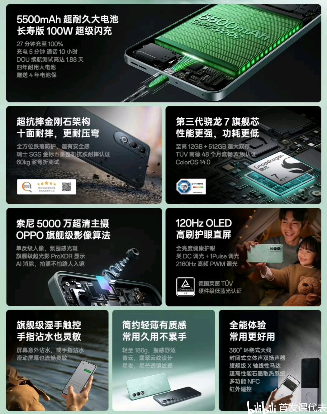 ◆ 电池容量:5500mAh,支持 100W 快充,配备SUPERVOOC S 电源管理芯片;