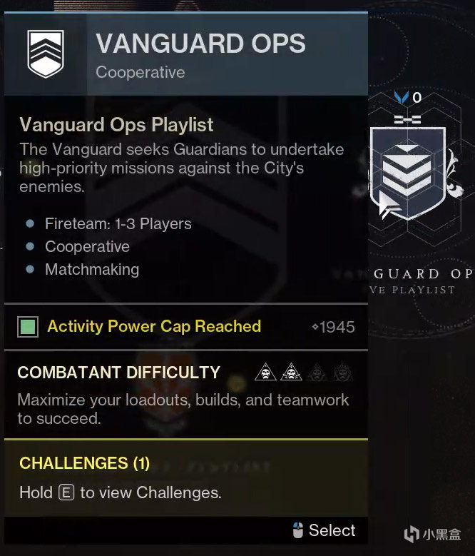 標準:光等上限 1945,包括(先鋒行動、賽季活動、異域副本、突襲和地牢 )