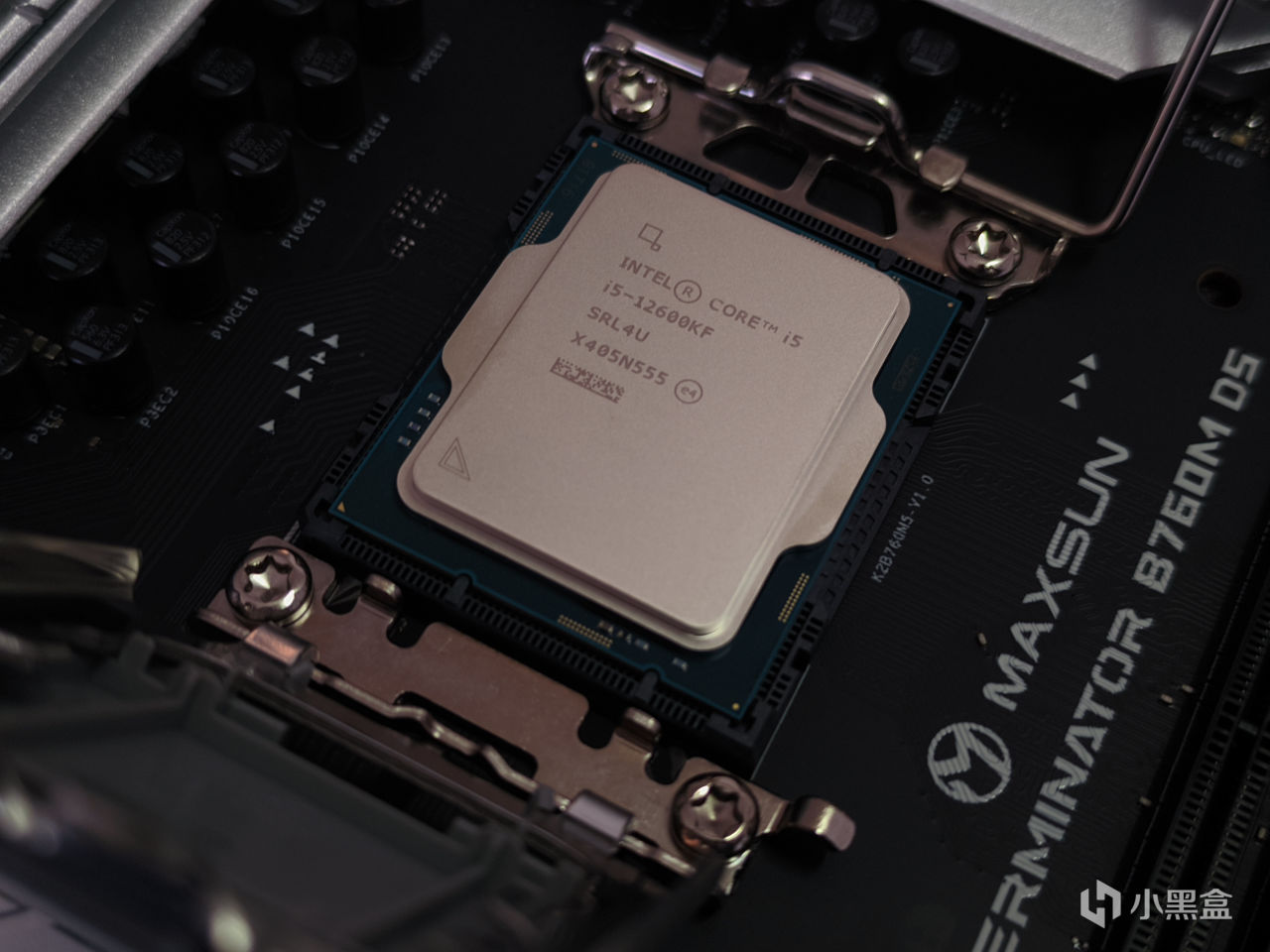 第二步,装上CPU,我这边选的是目前性价比很高的12600KF,与12代处理器之前的安装方法不同的事,12代处理器安装时,上面的盖板需要自行取下,不然直接下压可能会卡住造成CPU损坏