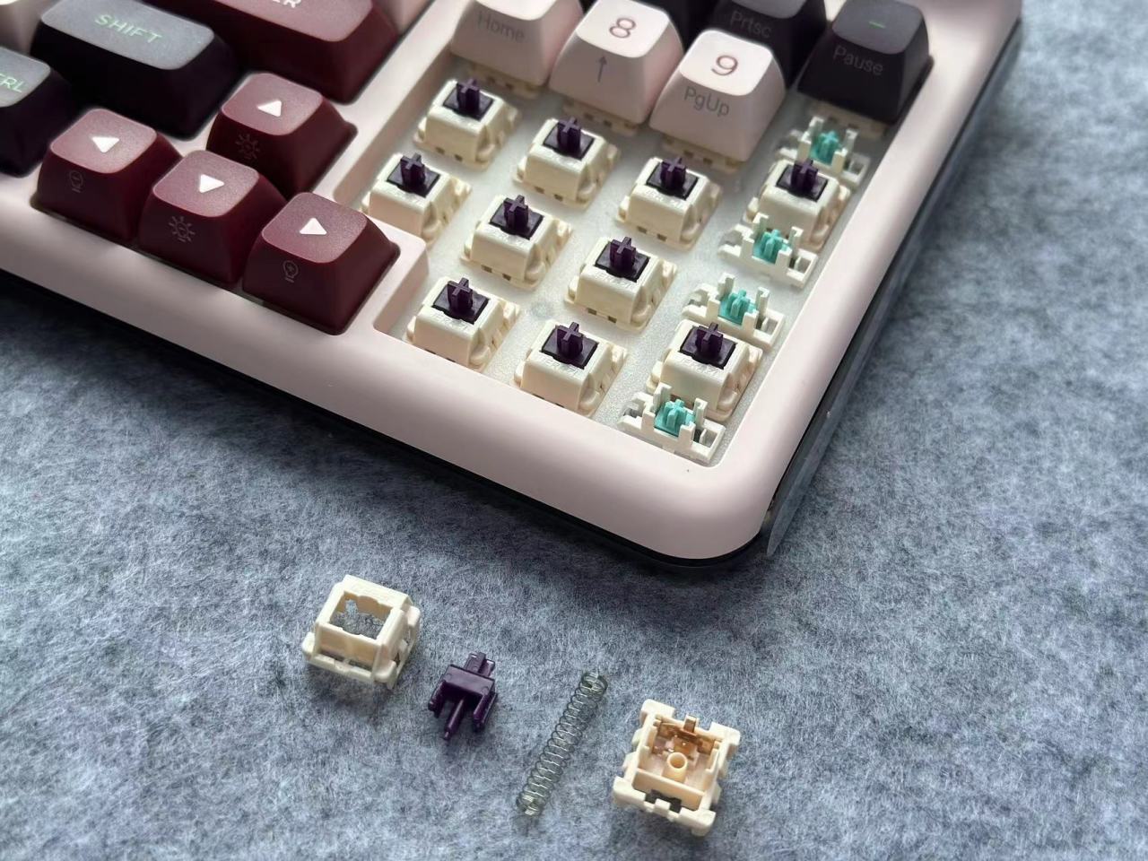 Z98Ai版本這次在軸體選用上沒有使用老Z98的軸體,而是採用最新的風雨軸。這顆軸體爲一顆提前觸底的線性軸,整個軸體外殼也是採用pom材質,但是軸芯沒有采用防塵壁,讓整個軸體的穩定性可能差一些。然後潤滑情況來說是做的非常不錯的。小爪/軌道/彈簧限位柱周圍都是有明顯潤滑。整個軸體聲音也是非常Hifi。