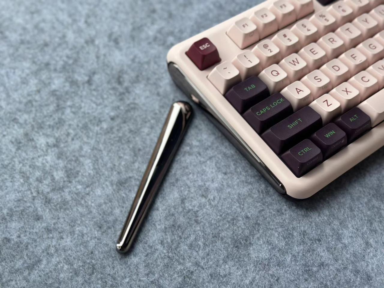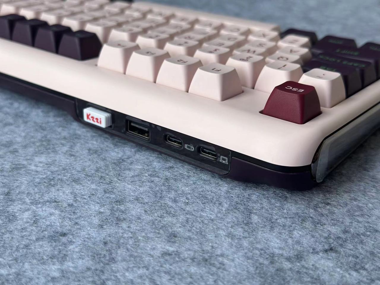 這次Z98AI版本的配色,依然採用彌豆子的配色方式。鍵盤鍵帽採用KAS高度,加上雙色PBT材質。鍵帽的PBT含量相較多,表面會有一些磨砂手感。PBT相比ABS的話是壽命更長,不容易打油,字符也不會用一段時間就沒了。
