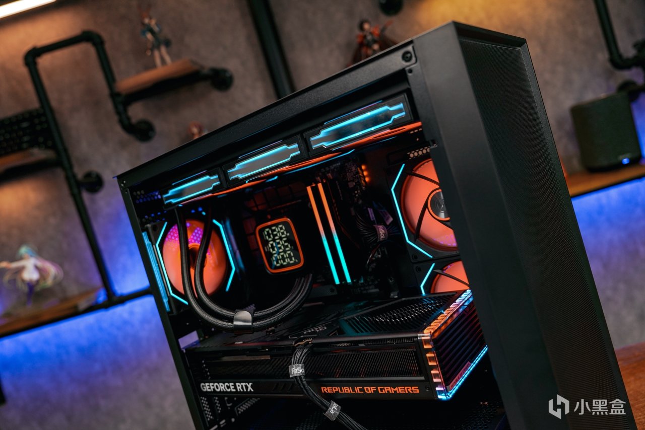 说到主机的展示,硬件当然是保证性能的关键,但外观和内部的灯效也同样重要,它们需要硬件之间的默契配合才能展现出最佳效果。最好是选择能同步操作的同品牌硬件,但现在第三方硬件如内存、显卡、散热器和风扇等也能与主板互联,实现同步调控。为了打造符合龙珠主题的颜色层次,我使用了联力风扇自带的L-Connect软件来设置不同颜色,再配合奥创软件调控其他硬件,最终呈现出红、蓝、橙三种拼色组合的龙珠主题配色,效果非常棒。