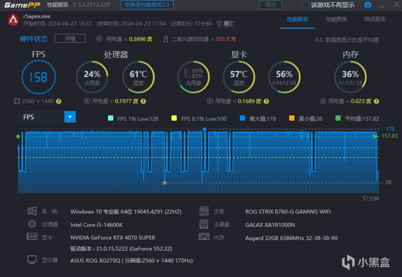 游戏实测,使用了4款主流的FPS游戏进行性能实测,无畏契约、APEX、LOL、绝地求生的平均帧数均在下列,大家可以做个参考。(PS:2K 170刷新显示器,游戏效果全高)
