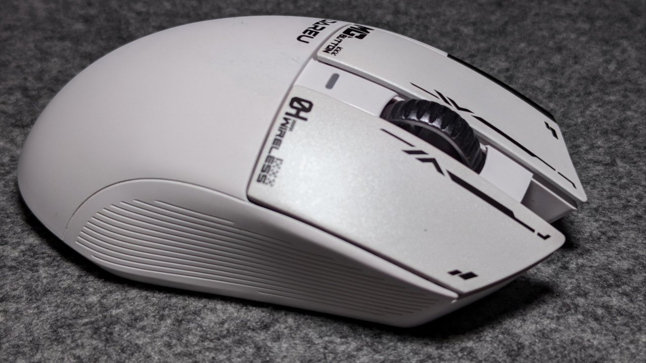 鼠標採用了左右不對稱的設計,在兩顆側鍵的下方有一枚狙擊鍵,搭配滾輪用來使用屏幕。