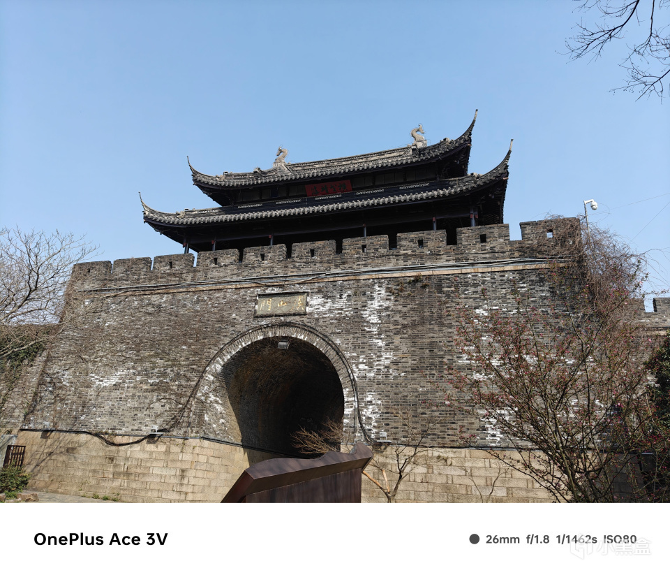 风景画面,城楼的细节非常清晰。同时明暗处理得当,屋檐下暗处的牌匾清晰,而明亮的城墙也没过曝。