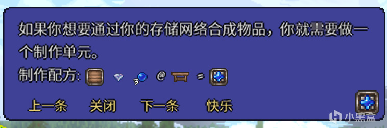 爲什麼會展示這些物品:材料在“存儲核心”有了,工作臺在“製作單元”擺放了。