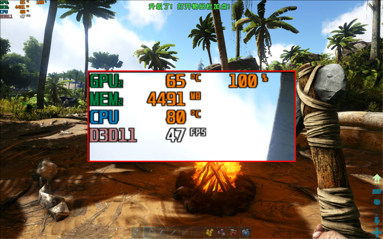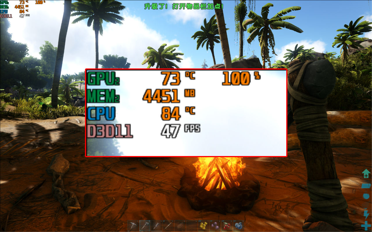 我以自己玩的《方舟:生存进化》为列,因为是测试嘛,我特意在2K分辨率下,将画质开到“极高”选项(调成“高”帧数直接涨一倍,肉眼可见的区别微乎其微),将AMD的CPU大家也都知道玩起游戏来发热就比较严重,对于AMD的CPU散热效果可以说是挺一般,但是显卡的温度下降极为明显!