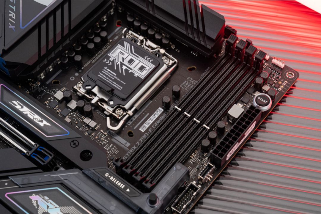 不過對比測試時,我們使用的是ROG STRIX Z790-F GAMING WIFI II主板,該主板是一款主流價位的Z790主板,有着非常鮮明的家族式電競潮牌的特點。供電部分,產品採用了16+1+2相供電模組,其中核心供電和GT供電部分每相均能輸出90A電流,同時其配備了雙PROCOOL II高強度供電接口,確保爲處理器提供充足的電流,讓其能在高頻下穩定運行,也爲超頻打好了基礎。配合AI智能超頻功能,輕鬆實現接近處理器極限性能的穩定超頻。