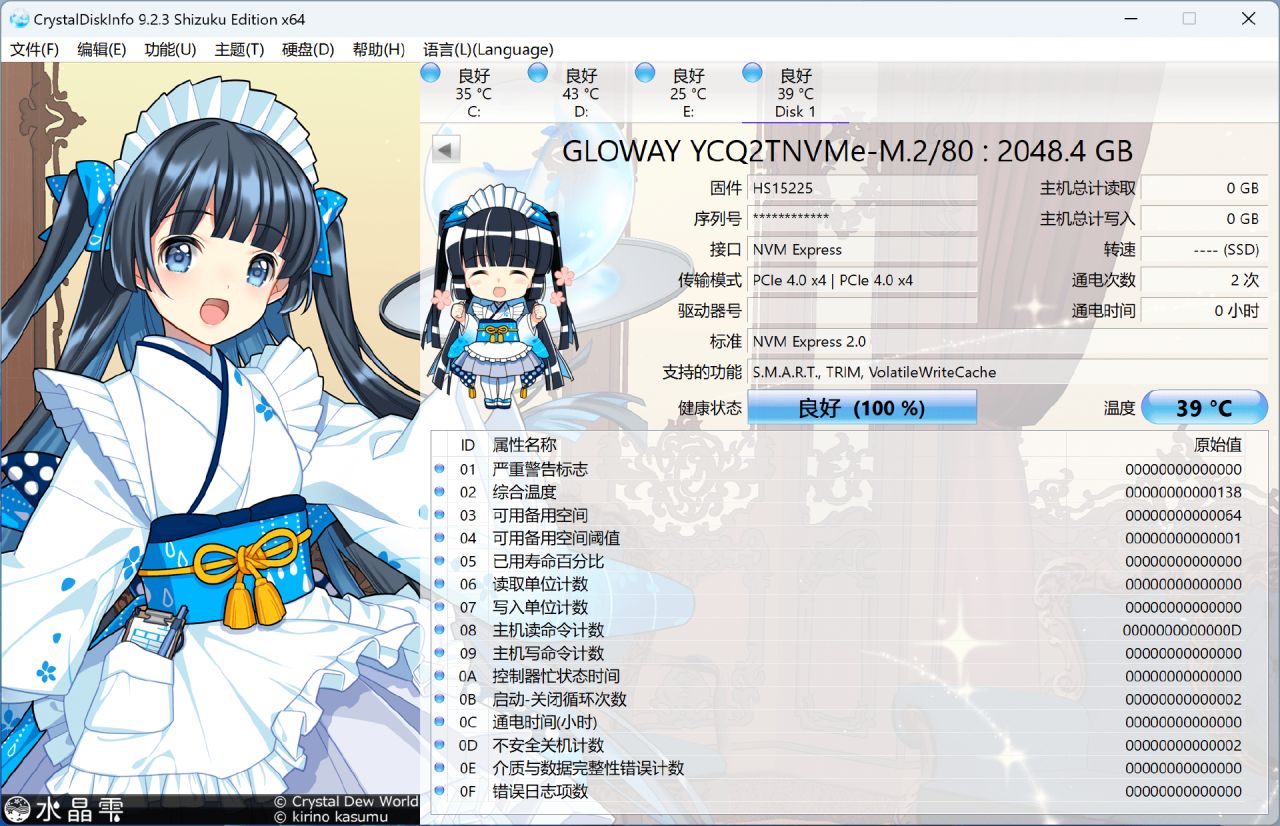 上機之後用CrystalDiskInfo看一眼,可以看到光威弈二代已經支持最新的NVMe 2.0協議標準了,在NVMe 1.4標準的基礎上新增了分區命名空間(ZNS)以及鍵值(KV)等新功能,可以根據數據使用頻率進行分區,並按順序存儲在固態硬盤內的獨立區域,從而減少對存儲數據的重寫和重新排列,降低硬盤的寫入放大係數,減少CPU計算負荷,提高SSD性能和壽命。
