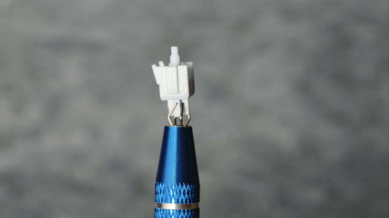 下面呢我们就对其进行一个拆解,大家可以看到他的上盖是淡紫色,底壳是深紫色,轴心是偏粉色的。材质上轴心为POM的轴心,PC的上盖,PA66尼龙的底壳,20mm单段加长的弹簧。