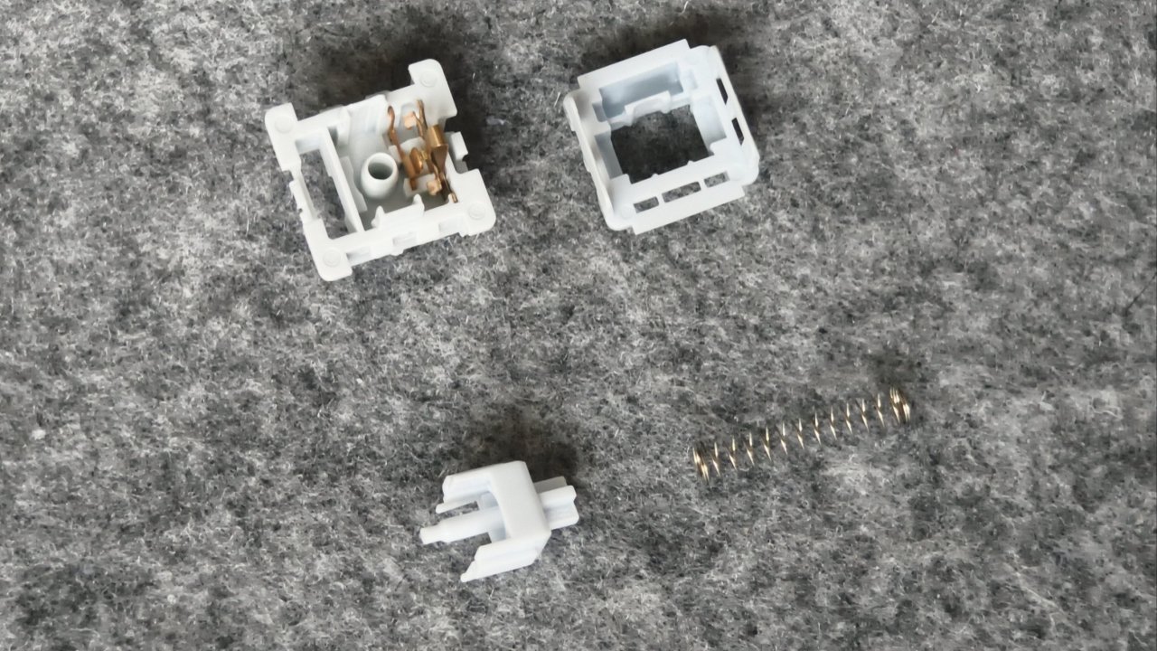 润滑方面给的还蛮足的,底部的导轨,弹片,限位柱以及最重要的轴心你都能看到较为明显的润滑痕迹。并且其中的轴心和弹簧限位柱都是先采用了干膜油浸过一次,后面再用润脂重新润过一遍的,因为整体的润滑效果还不错,所以你在打字的过程中也不会有那种沙沙沙的感觉
