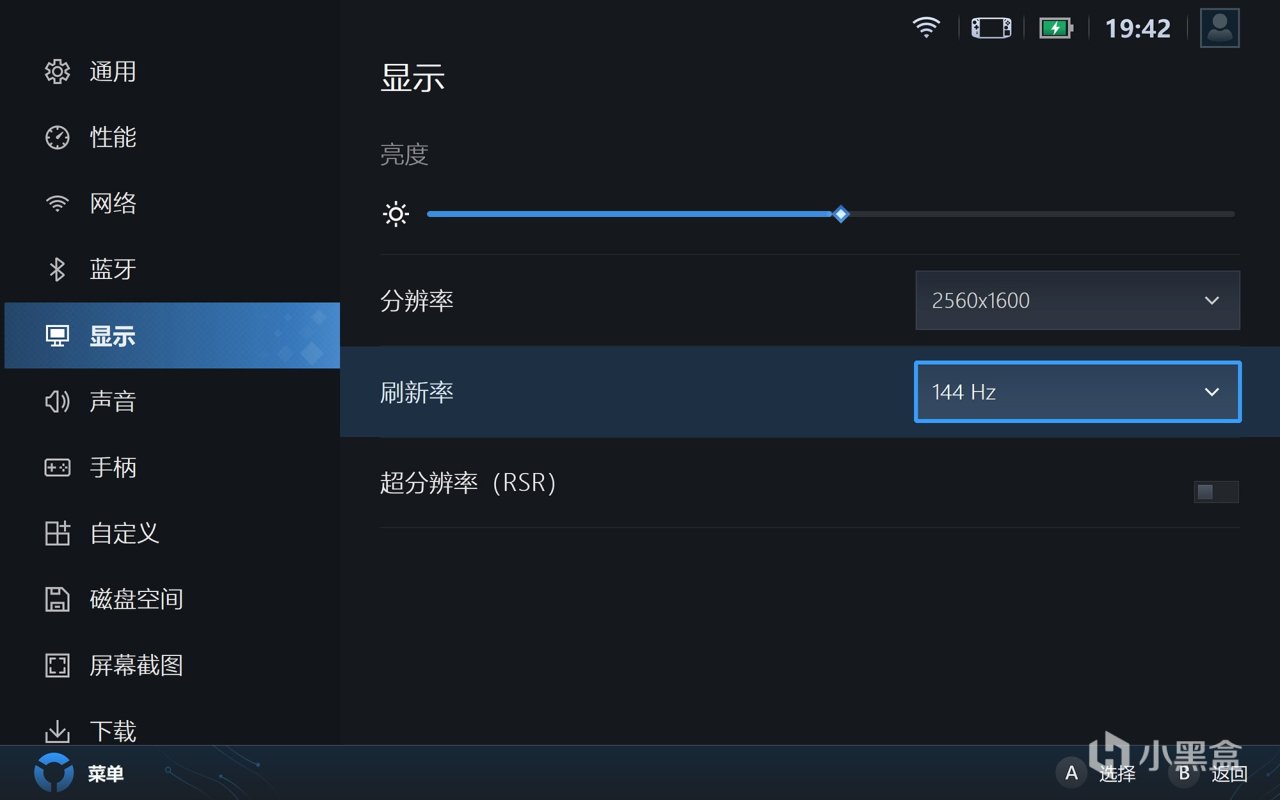 控制台内置了一些较为常用的系统设置,比如性能模式电源模式,或者屏幕分辨率刷新率等参数,其实这些参数的修改也可通过Windows系统来实现,假如在外使用可适当调低显示屏幕参数,有效节省电量提高续航时间,更多的手柄的参数设置以及驱动更新等配套设置。