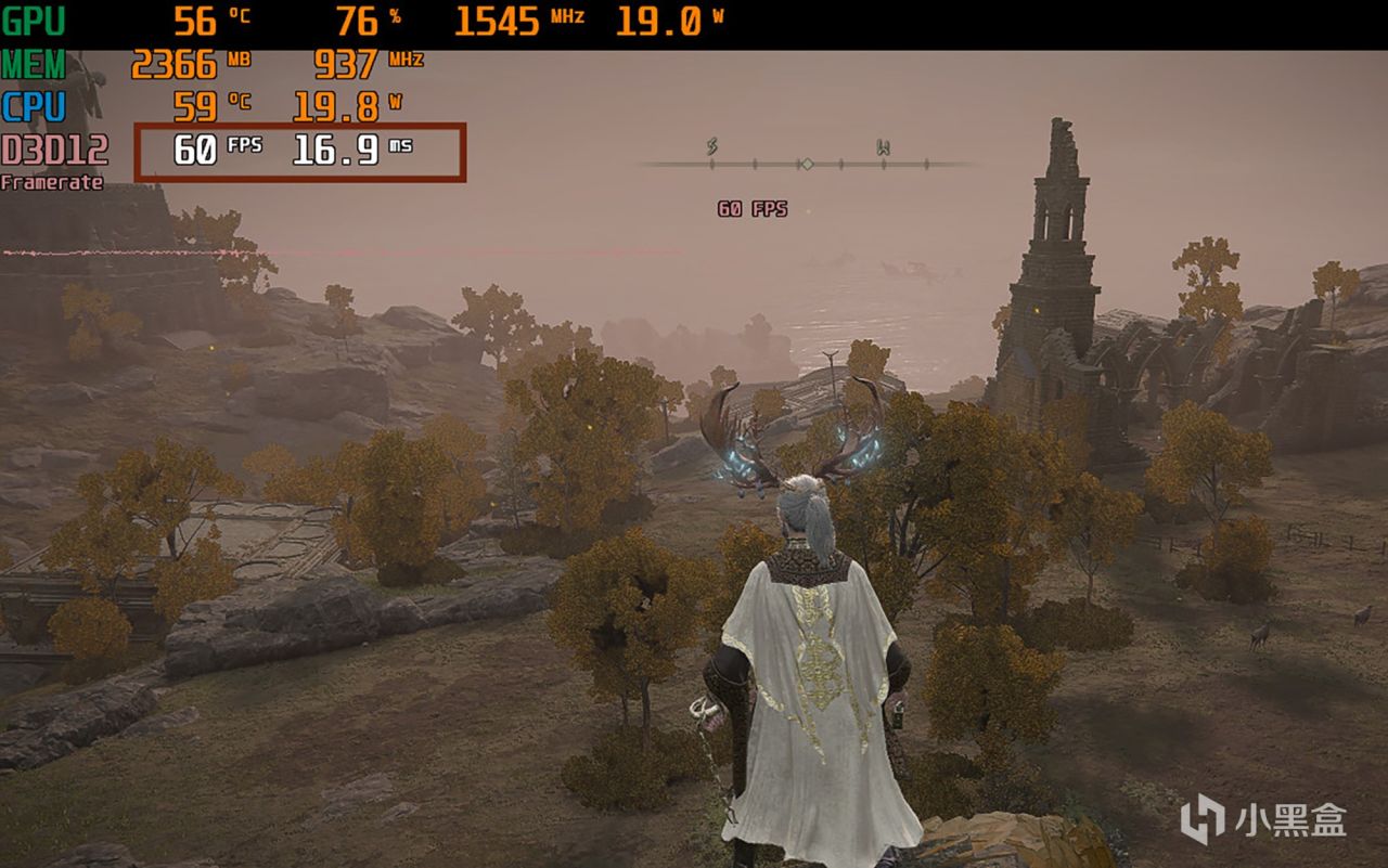 《艾尔登法环》画面分辨率设为1280×800,画面品质设为中等,关闭自动调整渲染效果与光线追踪效果,实测在野外跑图时的帧率能稳定在60FPS,毕竟这游戏锁定60帧的,假如开启高预设画质帧率会降至48FPS。