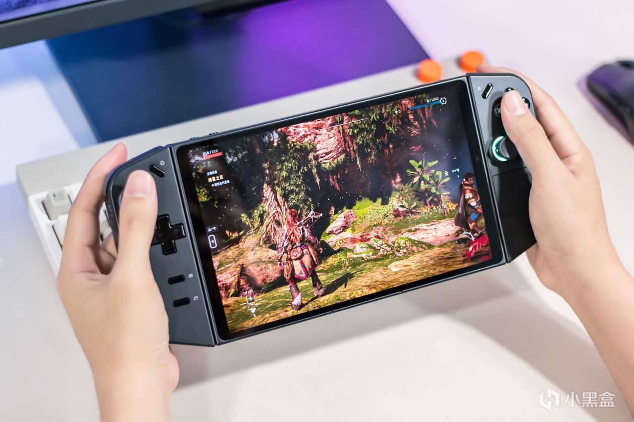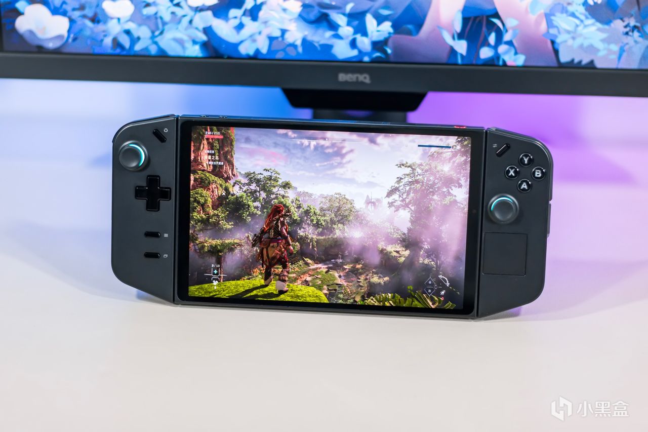 在前面忘了说联想拯救者掌机LEGION Go的三围规格,整体尺寸为298×131×41mm,主机自身尺寸为210×121×20.1mm,主机自身重量为640g,若算上手柄的总重量为864g,这个重量长时间握持游戏明显不现实,还好手柄能够单独拆卸的,将主机放置桌面上,握持手柄进行游戏,即使长时间游戏也不会造成什么压力,若条件允许还是更倾向于连接传统手柄。