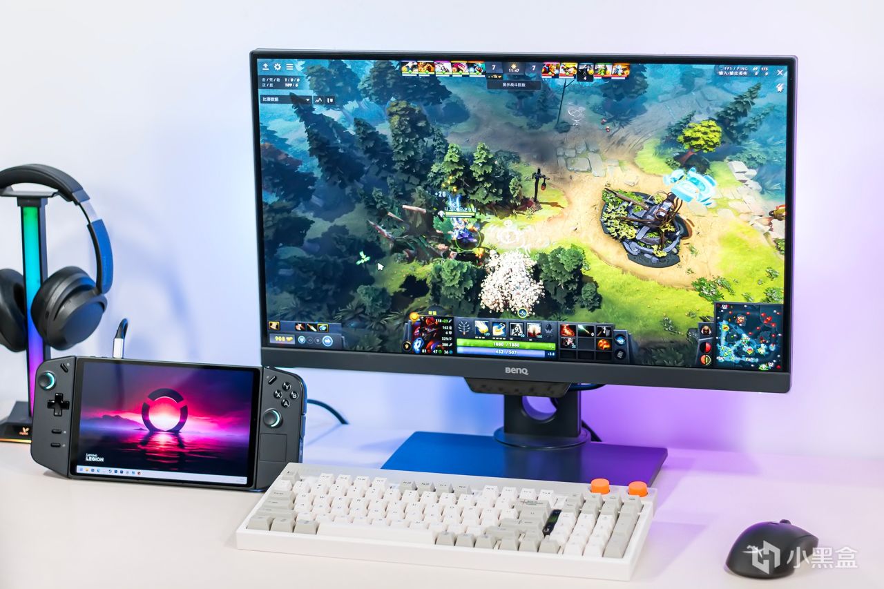 其实除了日常办公剪辑视频等场景外,也可作为用于运行电脑游戏,比如一些射击类MOBA对战类只适合在大屏幕上玩的游戏,使用掌机自带的那块8.8英寸的屏幕,确实过于难为双眼,《DOTA2》以2K分辨率中等画质运行,平均帧率也能有70FPS左右。