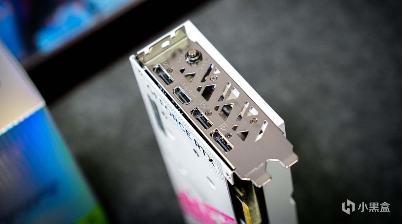 顯卡接口部分與其他RTX4060顯卡一致,同樣是3個DP和一個HDMI接口,能滿足絕大部分用戶的多聯屏拓展需求;同時上方還有一鍵OC超頻按鍵,按下後顯卡就會處於超頻狀態,GPU核心頻率會提升到2580MHz,性能釋放更出色。