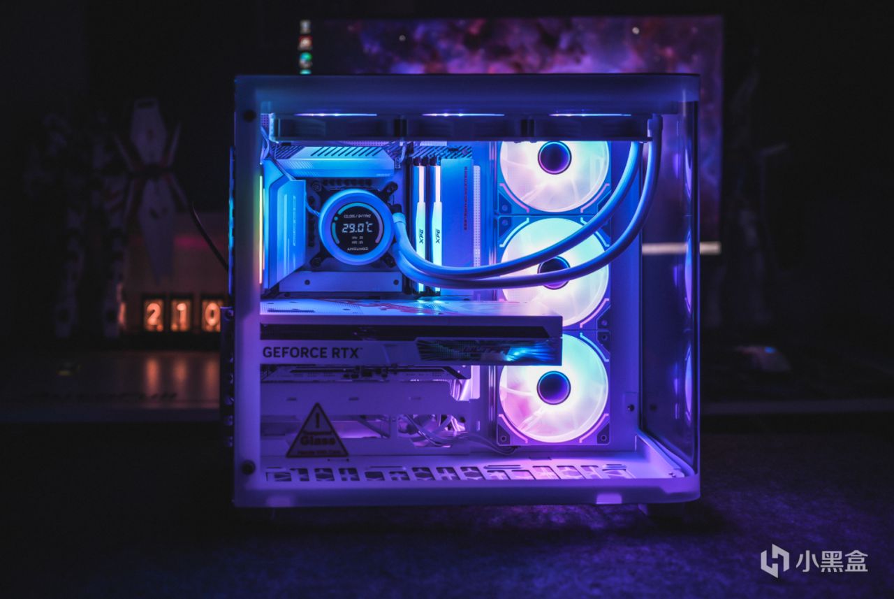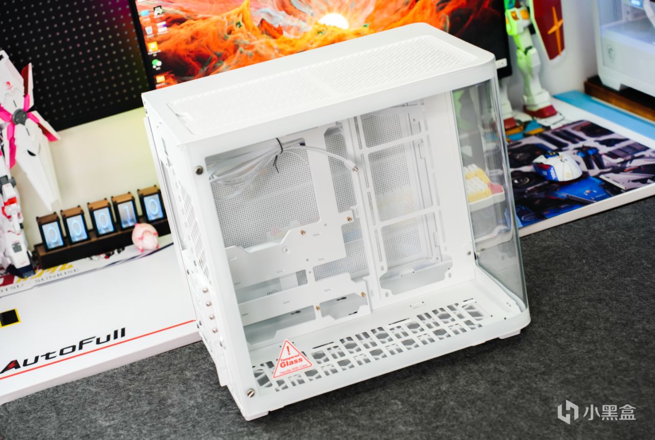 這次機箱用的是喬思伯TK-3,也被很多網友戲稱爲大號魚缸機箱。該機箱最大的特點就是採用了一整塊熱彎環視玻璃,貫穿前面板和側擋板,同時還支持背插主板,裝機後的視覺效果更是直接拉滿。