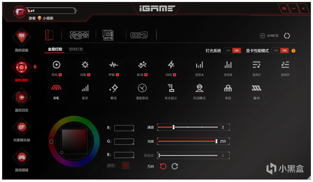 更重要的是其RGB燈光同步模式也非常多,可以呈現出非常各項炫酷的效果。