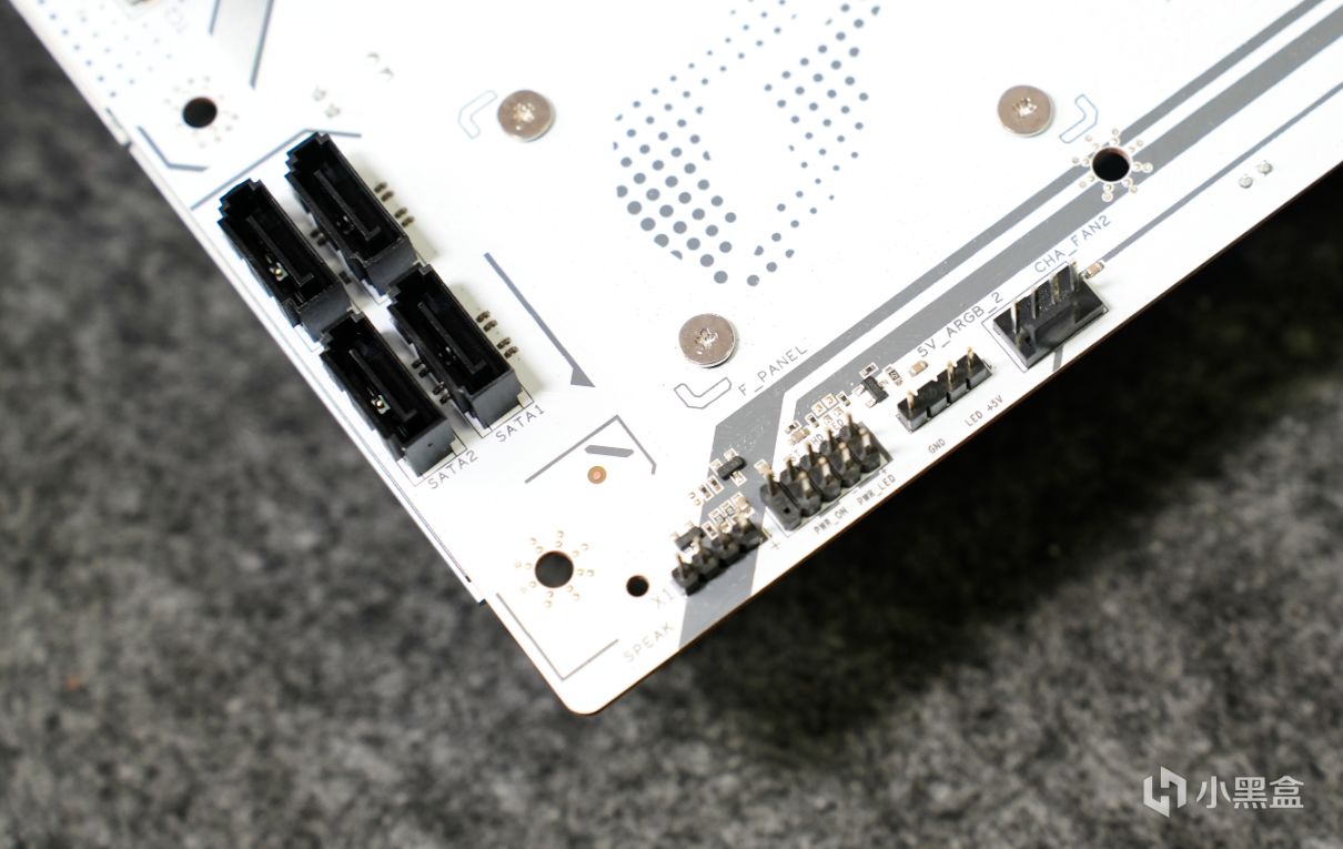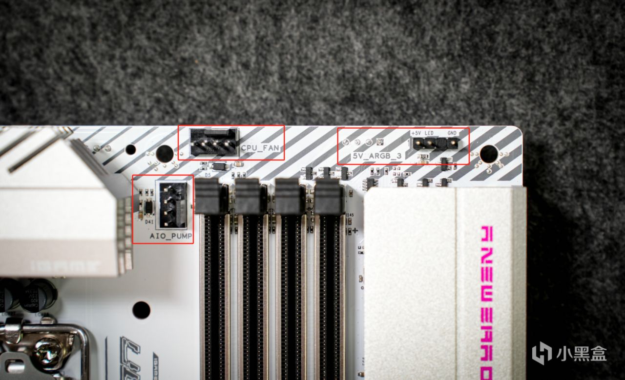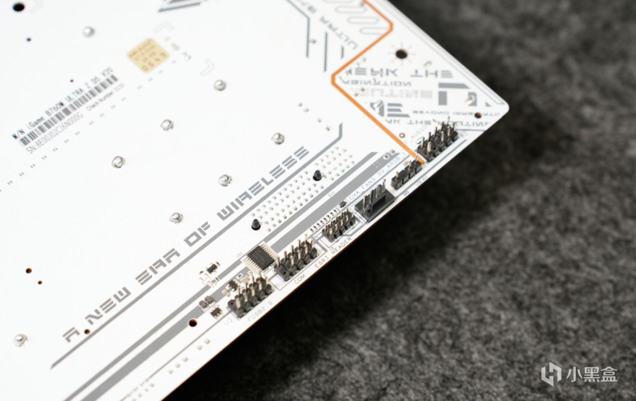 雖然七彩虹iGame B760M D5背插是一塊背插主板,但其實正面還保留了一些少數接口,比如頂端處有CPU風扇、水泵接口以及一個5V RGB插幀。個人覺得如果都放在主板背面就完美了。