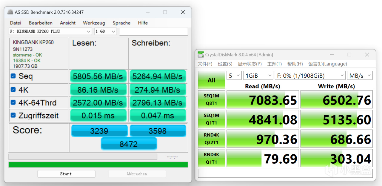 硬盤:愛國者P7000 1TB+金百達KP260 Plus 2TB