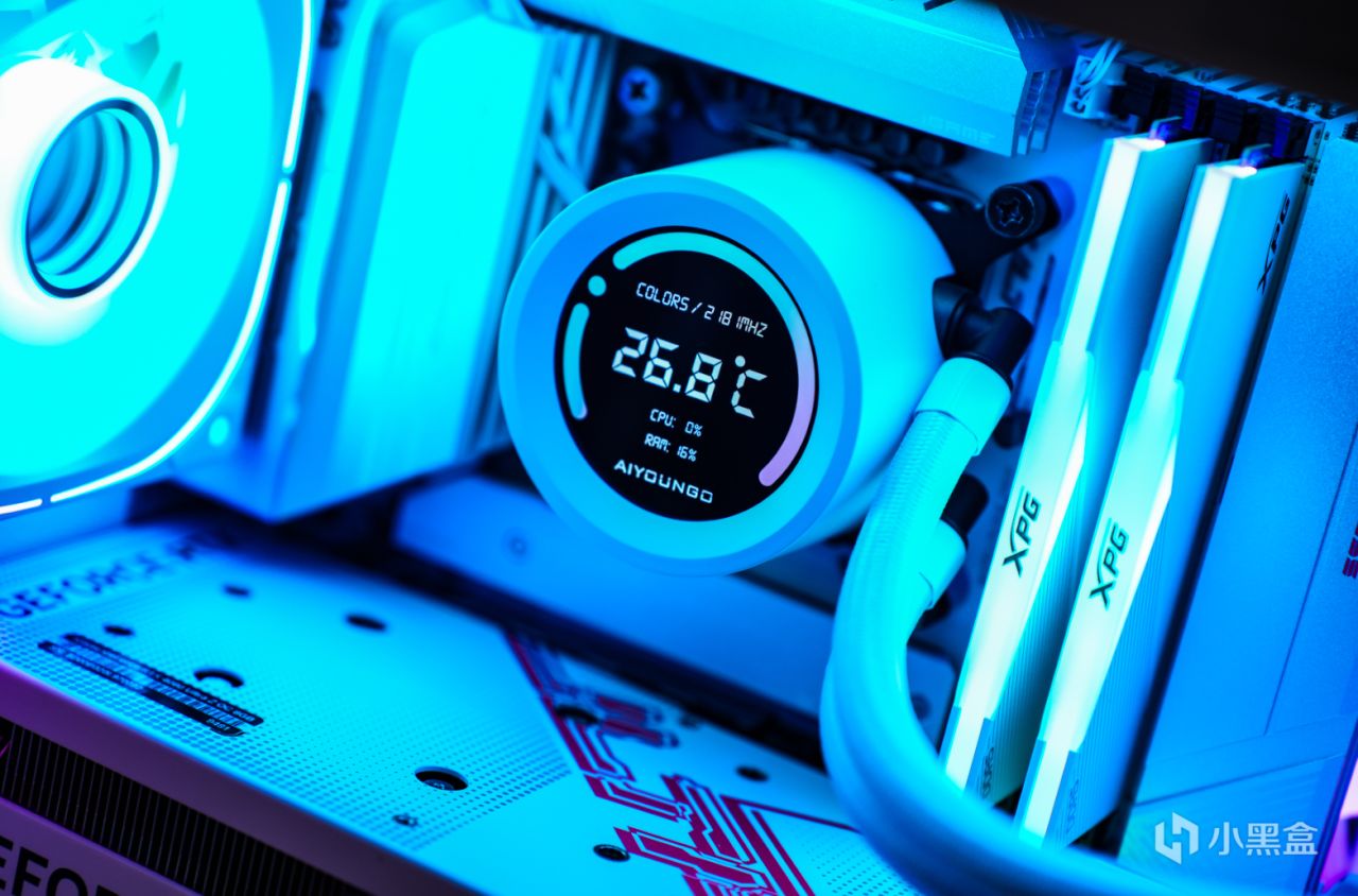 散熱器我用的是愛國者冰魄SX360白色版水冷散熱器,該散熱器應該是市面上最有性價比的數顯散熱器,水冷頭上帶有一個小屏幕,可以實時顯示CPU溫度等一系列信息,壓制i5-12600KF綽綽有餘。