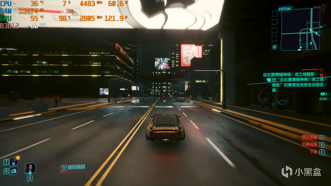 開啓4K分辨率+最高畫質(關閉路徑追蹤)+DLSS 3.5超級性能模式,遊戲幀數能保持到60FPS左右。