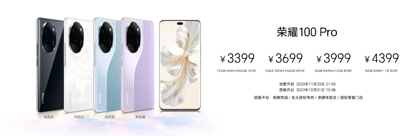 【荣耀 100 Pro,正式发布:3399元起】