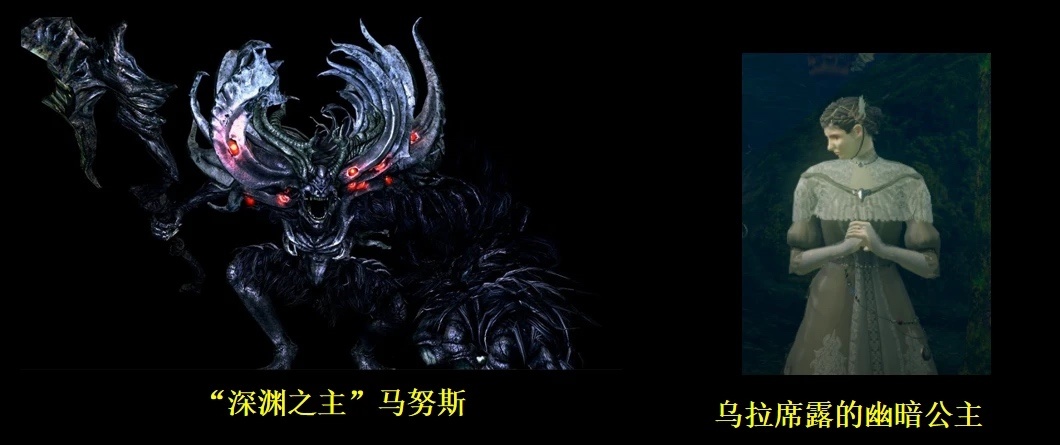在深渊之中,有一位“深渊之主”马努斯(Manus, Father of the Abyss,深淵の主)。关于马努斯的英文绰号存在错翻,“Father”明显为无中生有的翻译。也正因此,关于马努斯的身份存在很多争议,有一部分推论(尤其是英文外网)认为他就是所谓的全人类之“父”,即最初拿到第四个王魂的矮人始祖。但也有推论认为他仅仅与乌拉西露有关,是乌拉席露人的先祖,毕竟父亲这个词是生造出来的。