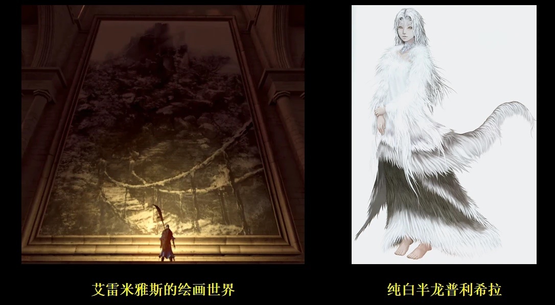 在王城中心的一处教堂挂有一副巨大的油画,其本质实际上是一片与世隔绝的封印区域,即绘画世界(Painted World)。绘画世界由艾雷米雅斯(Ariamis)创造,其世界内部是一个与世隔绝的积雪深厚之地,建筑仿照古老寺院。