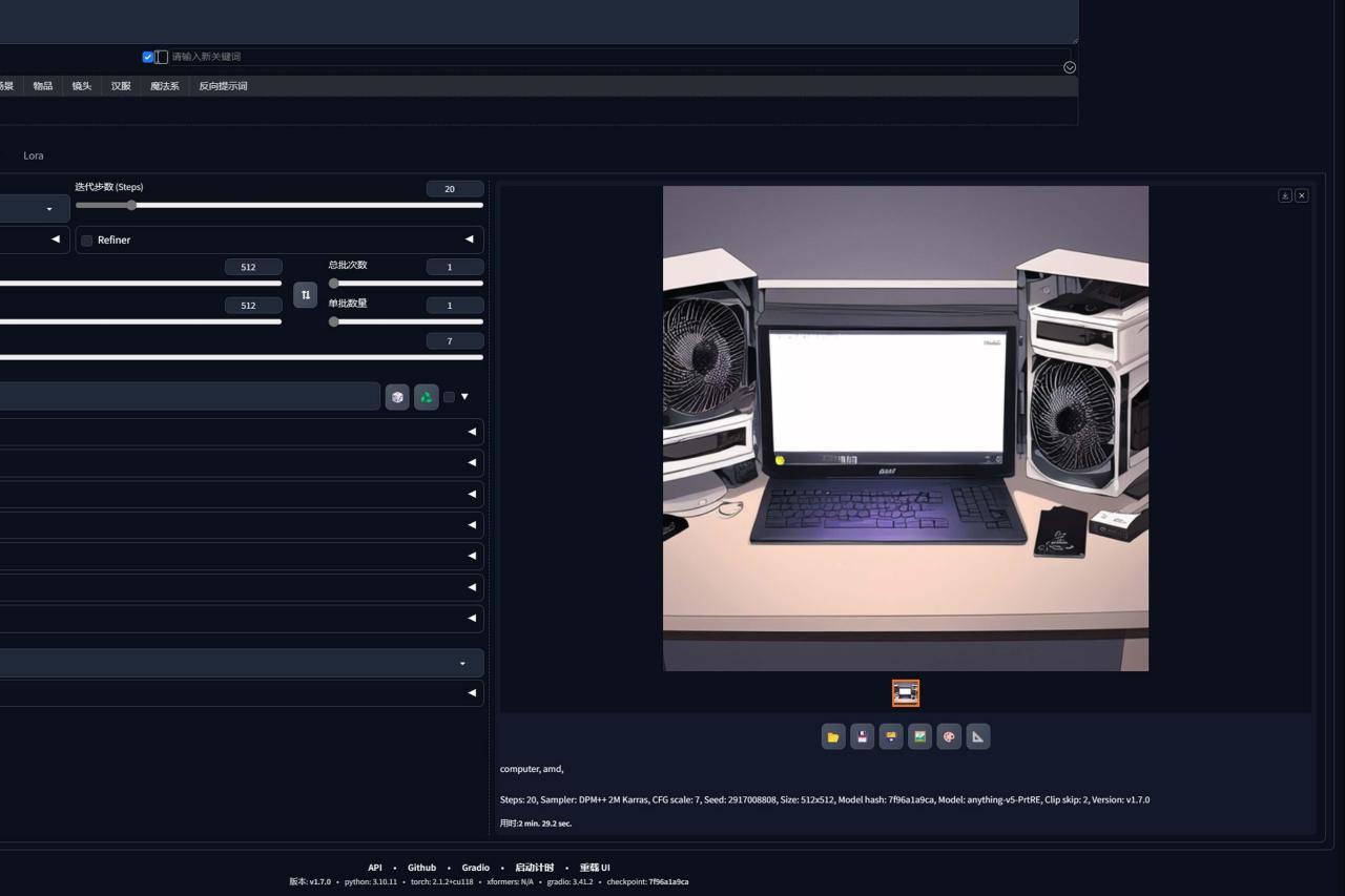 最後是代表AI性能的Stable Diffusion,兩個關鍵詞出圖,測試結果如下圖所示: