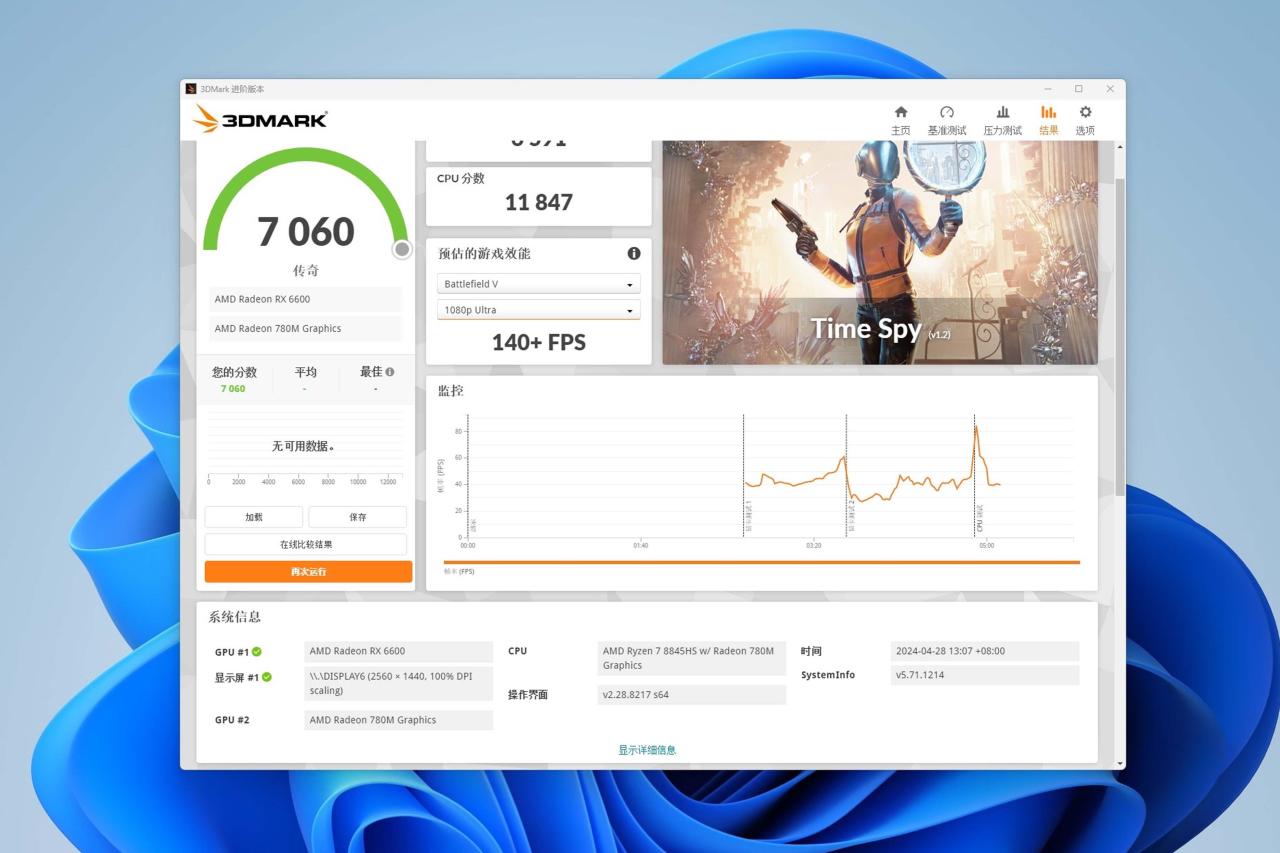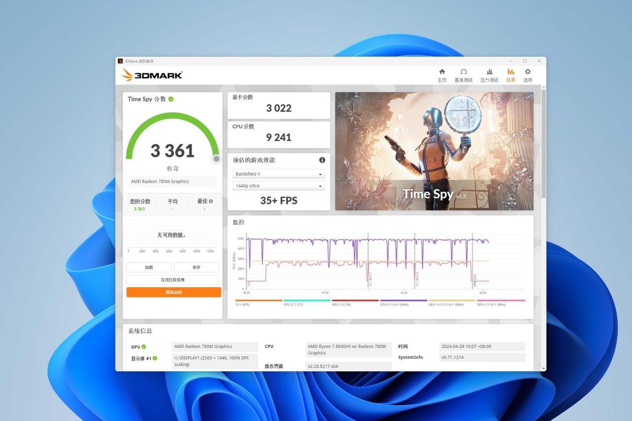 其次是針對DX12的TimeSpy模組,測試結果如下圖所示:
