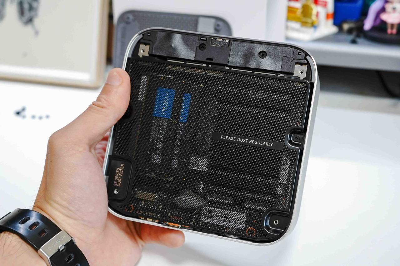 拆掉零刻SER8的底蓋就能看到各種防護細節,首先是一大塊高密度透氣蝕刻防塵罩,基本可以攔截貓毛等污物,靠近背部的部分還貼了對應的防靜電貼。