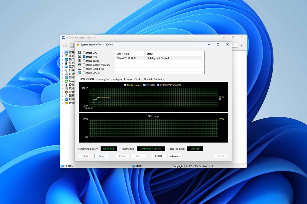 ● 滿載狀態下,CPU溫度穩定41°,硬盤溫度穩定在51°,主板溫度穩定在40°。