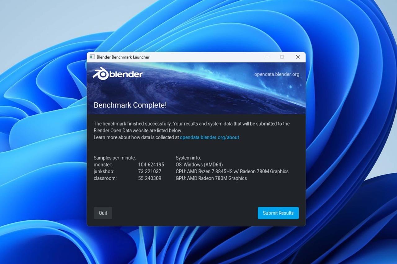 其次是代表綜合性能的Blender Benchmark,測試結果如下圖所示: