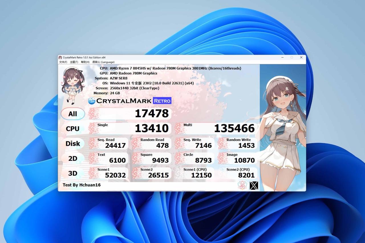 在手動調試之後,除了魯大師以外,其他量化測試工具的結果均高於同8845HS平臺設備的平均水平,感興趣可以自行找資料/自測比對。