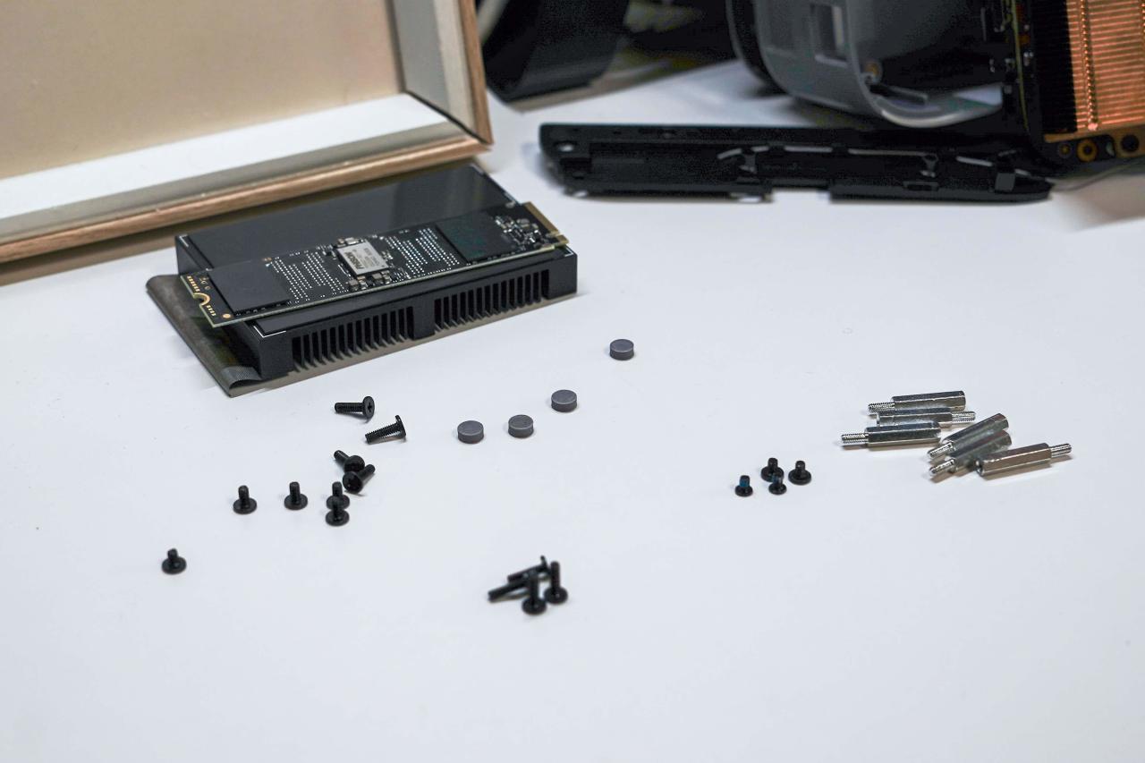 原裝固態硬盤散熱馬甲好評,除了非常紮實的散熱鰭片以外還內置了散熱墊,滿血PCIe4.0協議的兩個M.2接口固態硬盤只有2280長度的定位柱,後期加裝需要注意一下。
