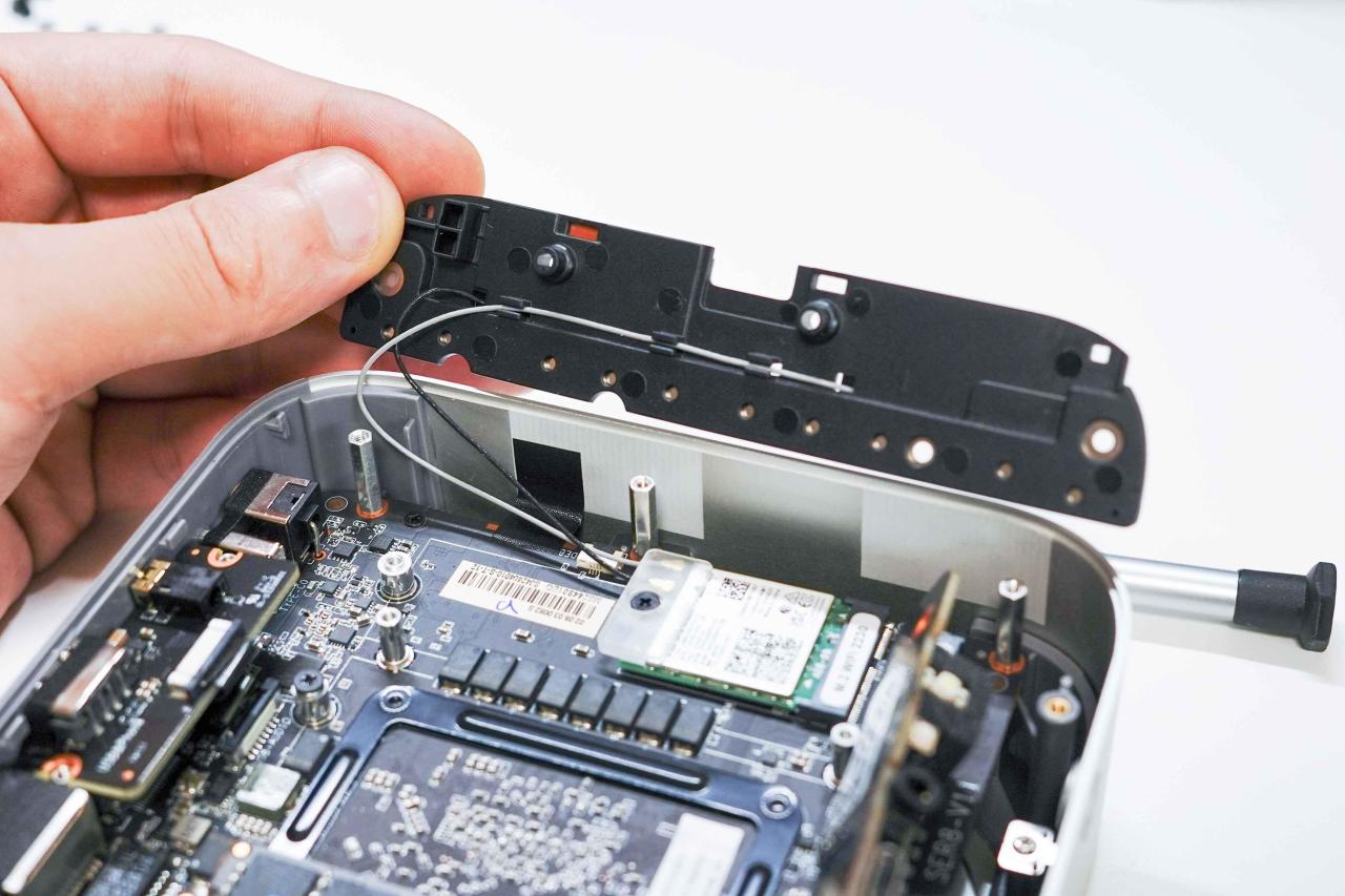 無線網卡的天線則是固定在防塵擋板上,拆裝很難弄壞,就是無線信號接受能力會差點,畢竟外殼有金屬遮擋。