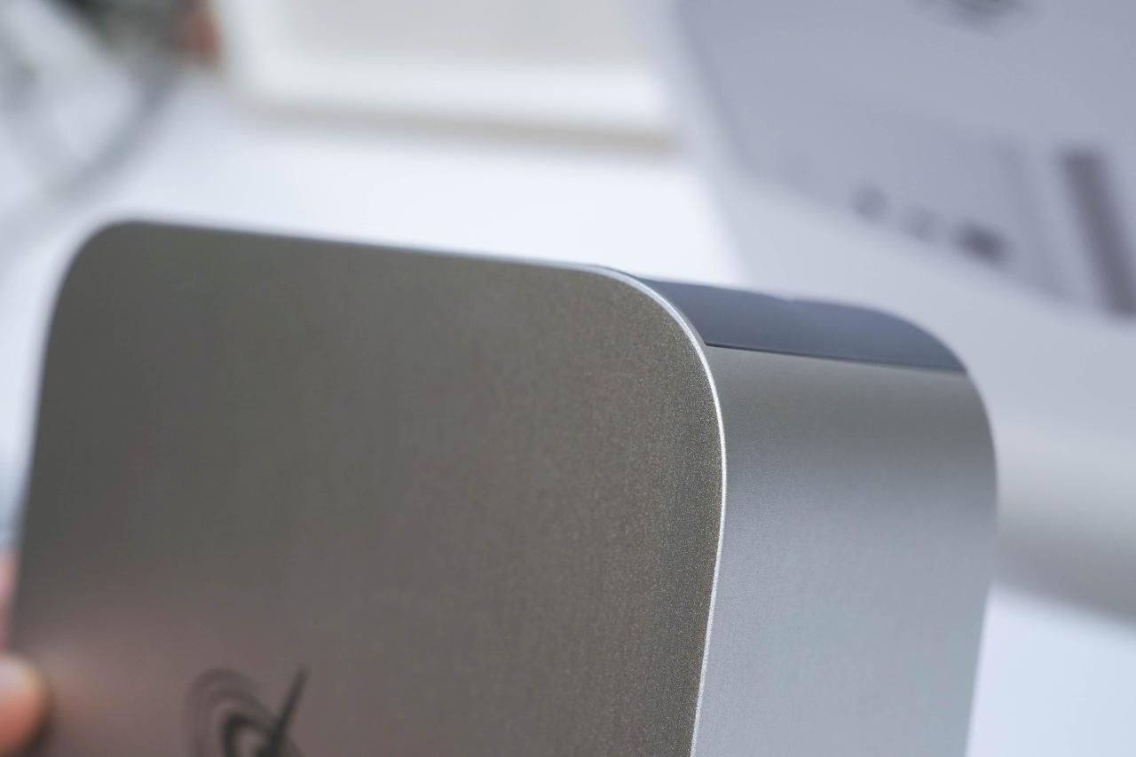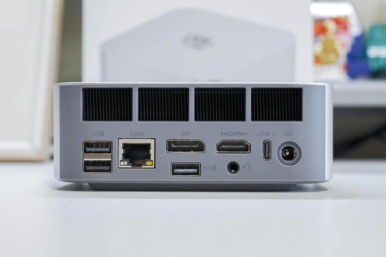 背面則是不怎麼需要拔插的接口爲主,包含了一個全功能的USB4協議Type-C接口(支持PD供電),比較細節的是背部是塑料材質,可以有效避免接口多帶來的靜電問題。