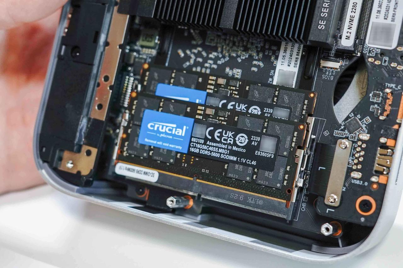 如果你買的是成品版本零刻SER8,原裝內存是5600MHz的英睿達DDR5內存,前文也提到過,8845HS最高能支持到的就是這個頻率,市售同頻率時序差不多,C46爲主。