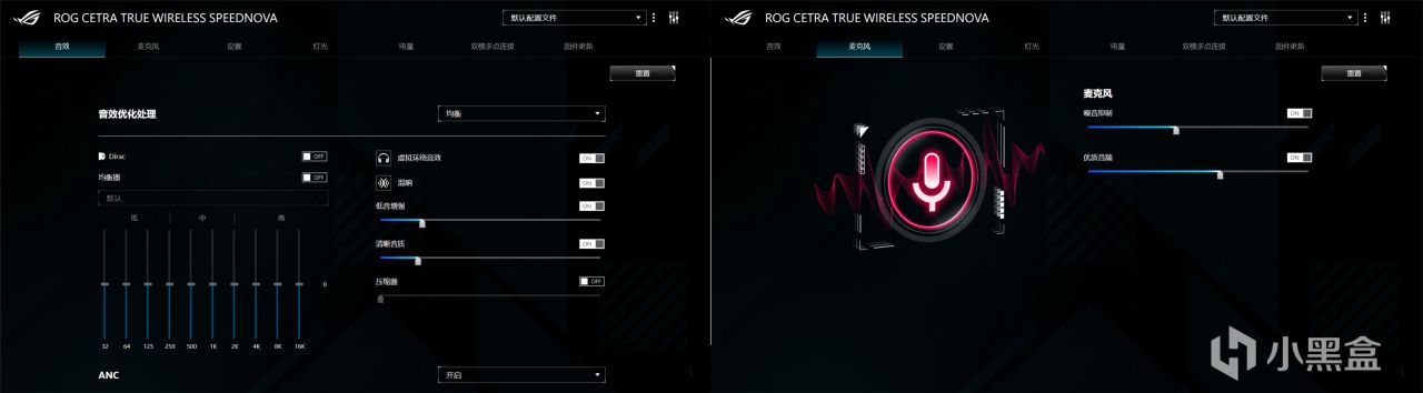 奧創能調的東西比較多,比如ANC降噪的四個檔位(低/中/高/自動),詳細EQ,語音通知還有光效。