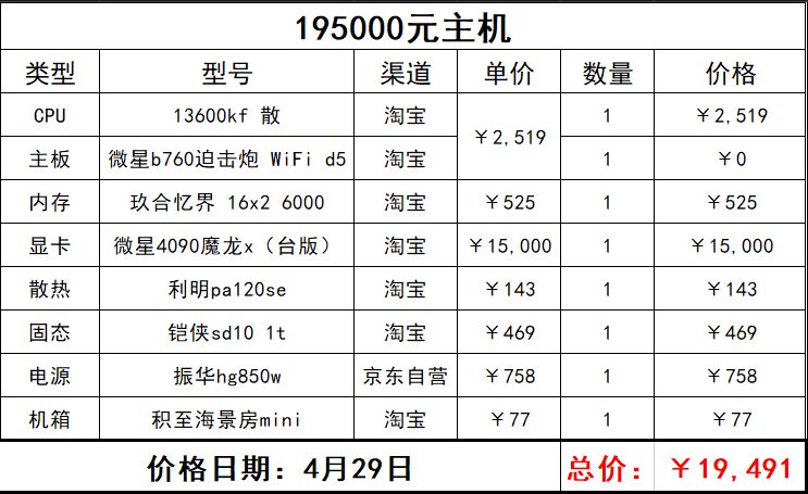 最後這個配置是一套4090配置,不能說很丐吧只能說非常丐總價不到兩萬,可以說就是爲了4090的這張卡配的