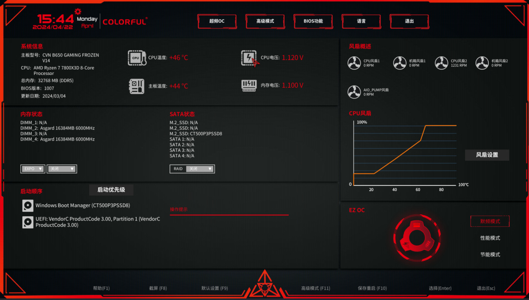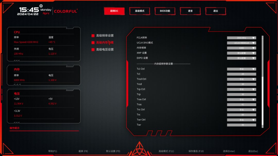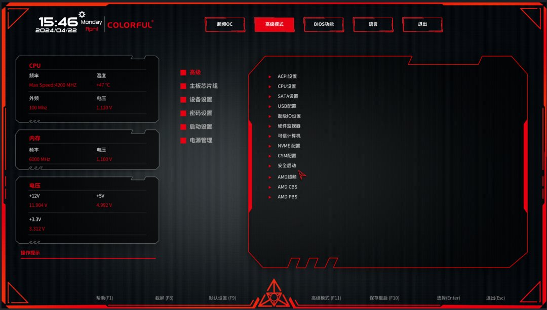 主板的供電用料帶CPU 7800X 3D/ 7950X也是能帶動,未來升級ZEN5也是可以的,大家關心的七彩虹主板BIOS,實測確實有不小的進步,各項功能設置,超頻設置應有盡有,設置起來也沒有什麼BUG。