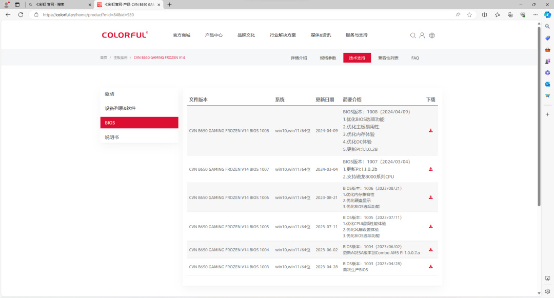 七彩虹 CVN B650 GAMING FROZEN V14 ,實測符合性能預期,大家比較擔心的BIOS,實測用起來至少有75分水平,基本功能 PBO 內存超頻這些都沒問題,上手起來也比較簡單,對新手也比較友好,顯卡和固態硬盤都支持PCIe 5.0,少有的千元B650白色ATX大板,8層PCB板用料,可以看到他們越來越用心做產品。